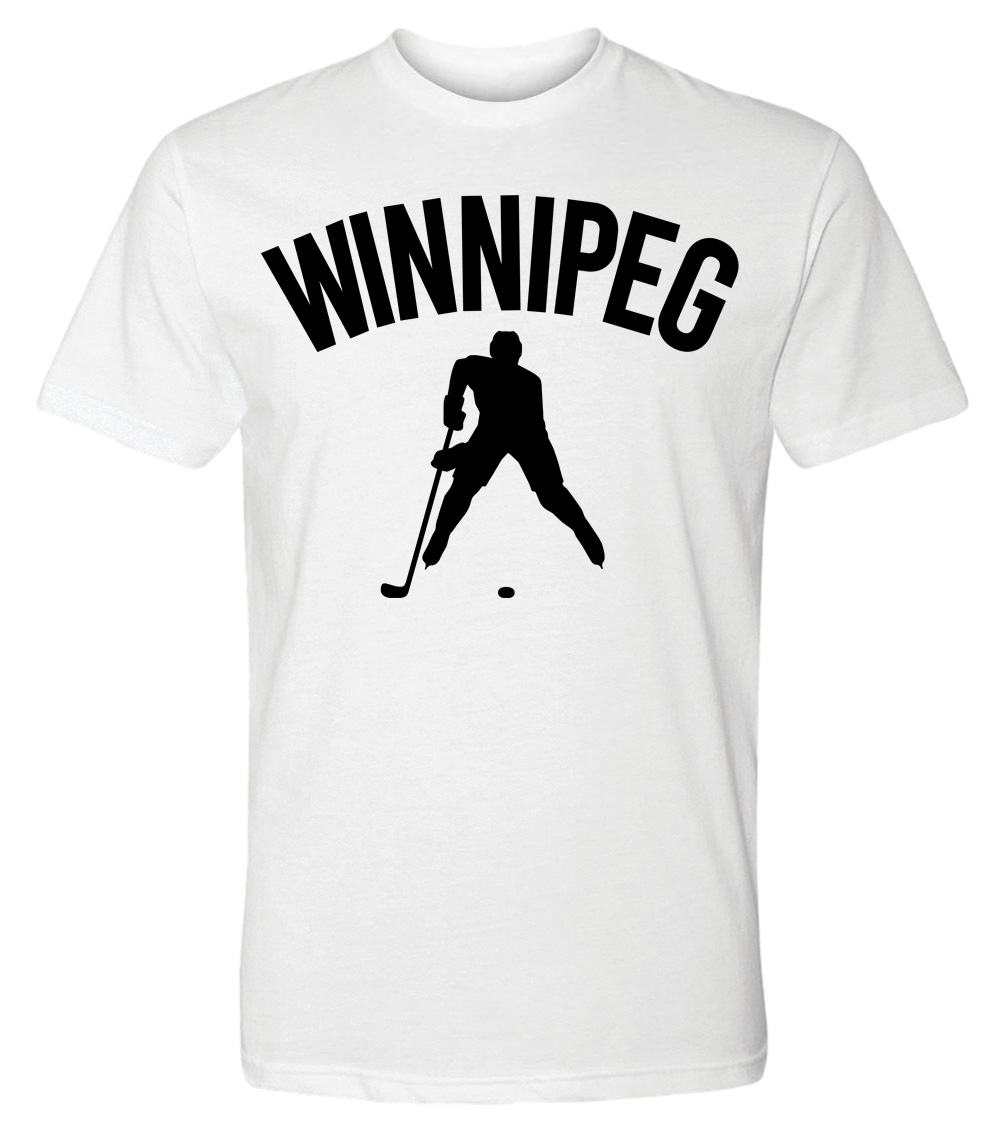 This premium tri-blend short sleeve shirt proudly displays the hockey loving city of Winnipeg, CANADA in combination with our trademark silhouette. The fabric weight is 4.5 ounces and made from 25% ring spun cotton, 25% rayon, and 50% polyester. Wash on cold and air dry.