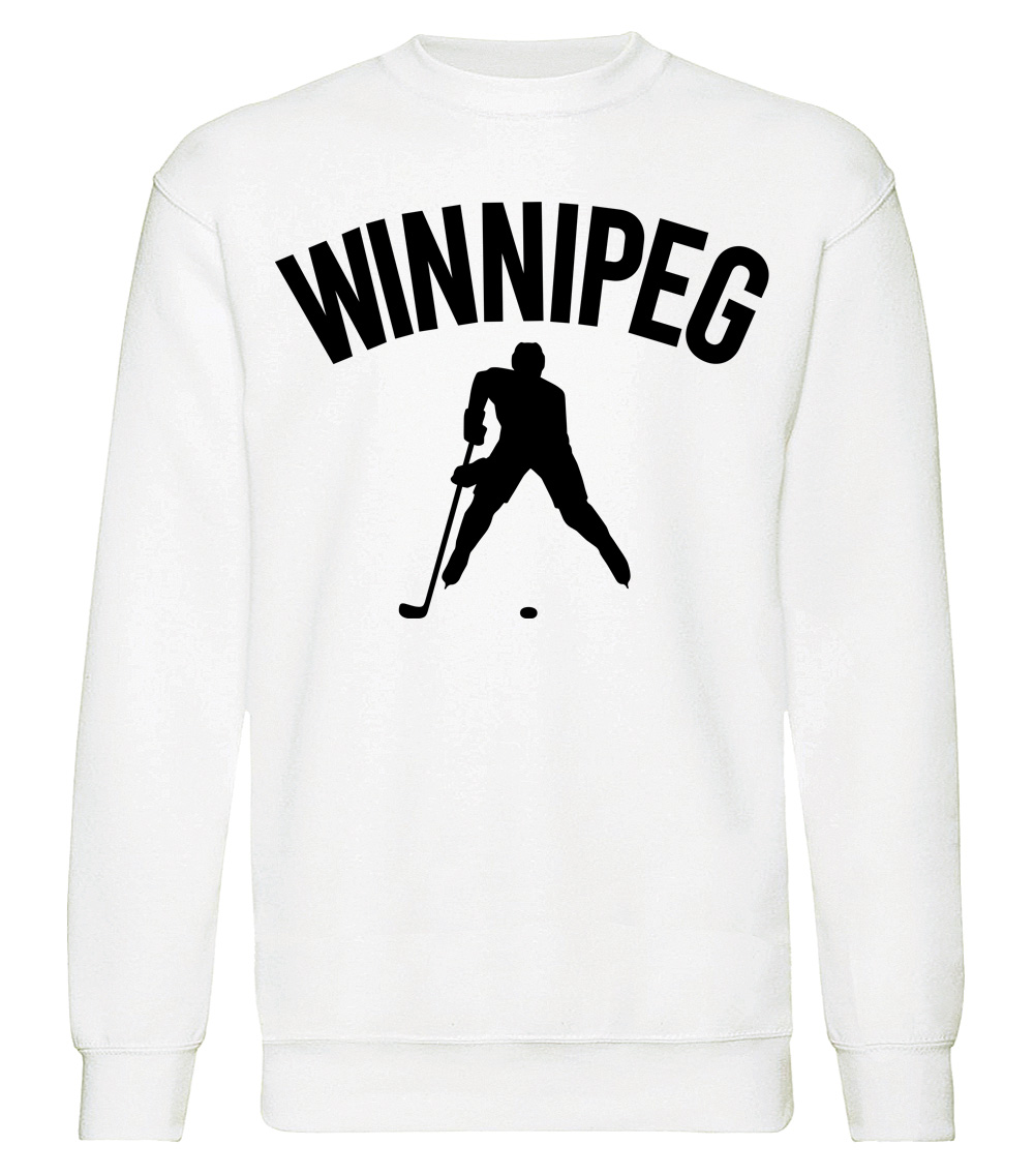 This premium blend sweatshirt proudly displays the hockey loving city of Winnipeg, CANADA in combination with our trademark silhouette. The fabric weight is 8.8 ounces and made from 65% ring spun cotton and 35% polyester. Wash on cold and air dry.